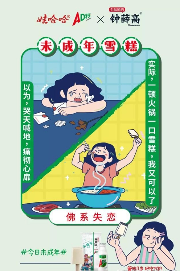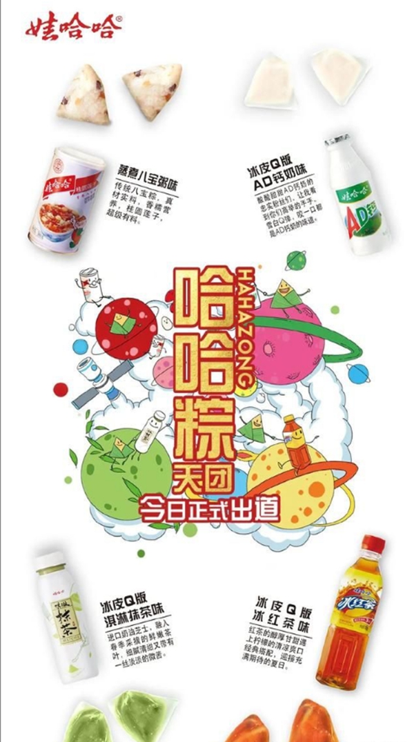 隨著新生代消費(fèi)者的成長(zhǎng),有一部分沒有跟上腳步的品牌已經(jīng)被淘汰,一些老牌子也因?yàn)楸毁N上了固化標(biāo)簽而業(yè)績(jī)下滑。哇哈哈就是一個(gè),但是哇哈哈并沒有氣餒,并且一直在嘗試創(chuàng)新“再創(chuàng)業(yè)”。時(shí)至今日,哇哈哈也一直活躍在人們的視野里。為了跟上新生代消費(fèi)者的步伐,哇哈哈持續(xù)推陳出新,推出各種跨界聯(lián)名,相繼推出AD鈣奶味月餅、娃哈哈哈哈粽,把跨界玩得風(fēng)生水起。AD鈣奶作為哇哈哈目前最火的大IP也不負(fù)眾望,圈粉圈到海外。